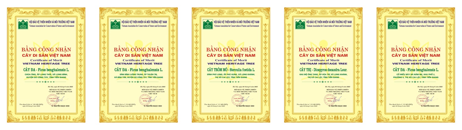 Bằng công nhận của 05 cây di sản Việt Nam tại Tiền Giang.
