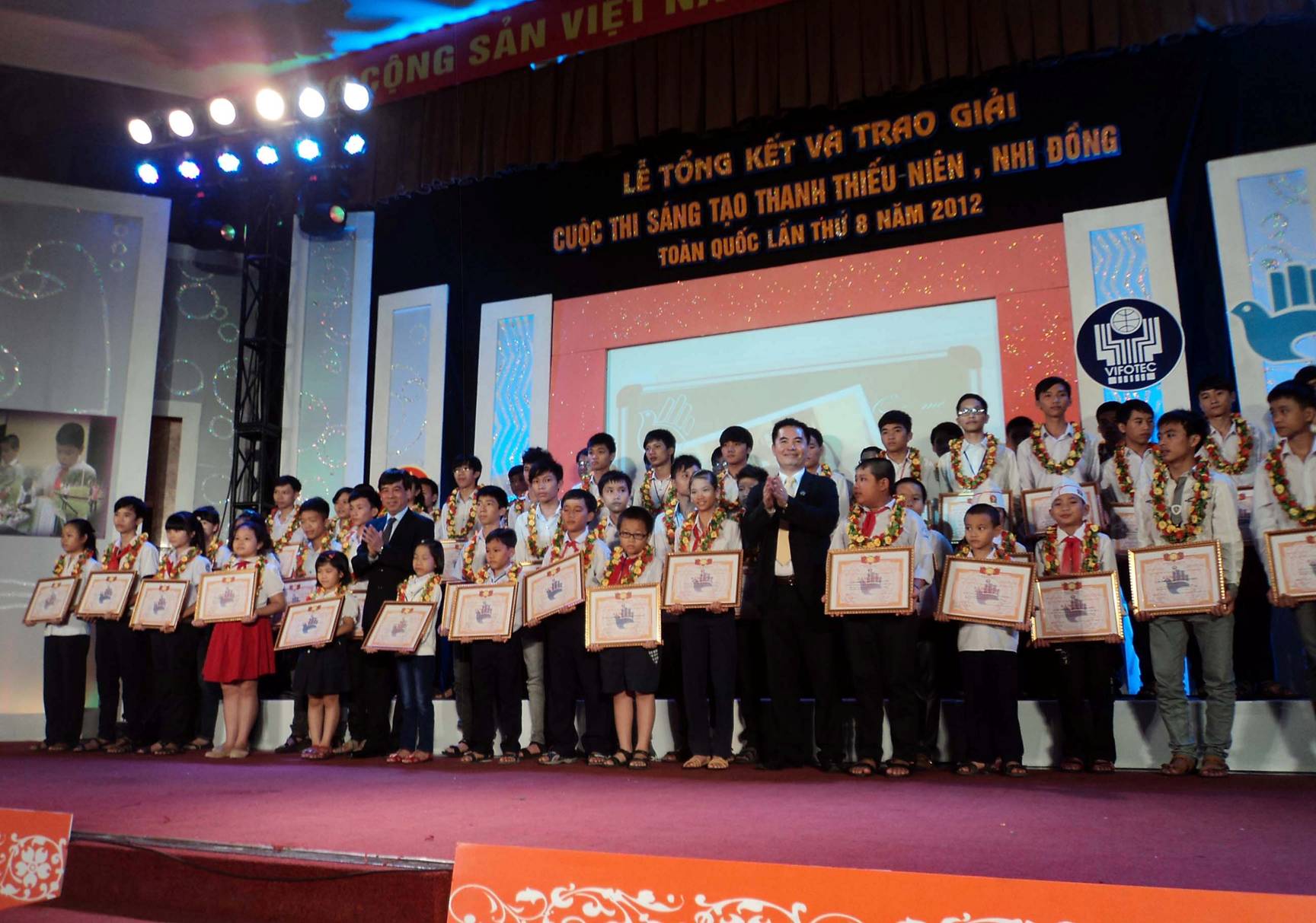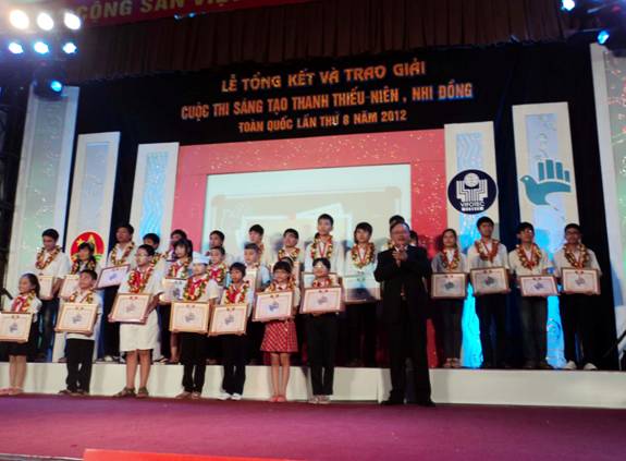 Sáng ngày 14/10/2012, tại Bảo tàng Hồ Chí Minh (Hà Nội), Liên hiệp các Hội Khoa học và Kỹ thuật Việt Nam, Bộ Khoa học - Công nghệ, Bộ Giáo dục – Đào tạo, Hội đồng đội Trung ương Đòan TNCSHCM, Ban Khoa giáo Đài Truyền hình Việt Nam, Quỹ Vifotec long trọng tổ chức Lễ Tổng kết và trao giải Cuộc thi sáng tạo thanh, thiếu niên và nhi đồng toàn quốc lần thứ 8 cho 75 đề tài đoạt giải. |