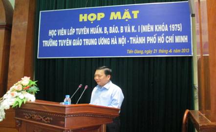 Như thường lệ, hàng năm cựu học viên lớp Tuyên huấn B, KI và Báo B (Niên khóa 1975), trường Tuyên huấn Trung ương Hà Nội - TP. Hồ Chí Minh luân phiên tổ chức họp mặt. Ngày 21- 4 - 2013, học viên Tiền Giang đăng cai tổ chức họp mặt cựu học viên; đến dự có Ông Trương Vĩnh Trọng (tên thân mật mà học viên lớp thường gọi là Anh Hai Nghĩa) nguyên Trưởng đoàn cán bộ, nguyên Ủy viên Bộ Chính trị, nguyên Phó Thủ tướng Chính phủ; ông Trần Thế Ngọc, Bí thư Tỉnh ủy và trên 180 học viên của 3 lớp Tuyên huấn B, KI và Báo B về dự họp mặt.