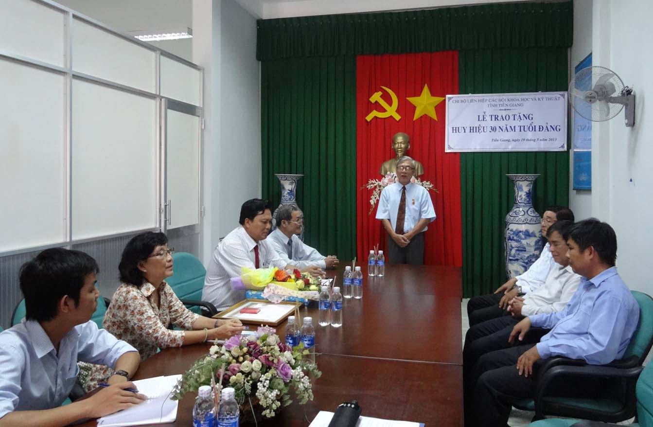 Chiều ngày 17/5/2013, Chi bộ Liên hiệp các Hội Khoa học và Kỹ thuật tỉnh (Liên hiệp Hội) tổ chức Lễ trao Huy hiệu Đảng 30 năm (đợt 19/5/2013) cho đồng chí Phạm Văn Khiết, Phó Chủ tịch Liên hiệp Hội. Dự Lễ trao Huy hiệu Đảng có đồng chí Võ Văn Dũng, Trưởng Ban Tổ chức - Đảng Ủy Khối các cơ quan tỉnh; Báo Ấp Bắc, Đài Phát thanh – Truyền hình tỉnh; và tất cả các đảng viên trong chi bộ. |