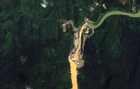 Hình ảnh thủy điện Sông Bung 2, tỉnh Quảng Nam do vệ tinh VNREDSat-1 chụp ngày 09/8. (Ảnh: VAST)