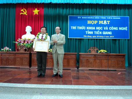 Vừa qua, Ủy ban nhân tỉnh Tiền Giang tổ chức họp mặt tôn vinh Trí thức khoa học công nghệ tiêu biểu năm 2013 và vinh danh 03 vị tân tiến sĩ có nhiều nổ lực trong học tập, nghiên cứu khoa học, chuyển giao công nghệ, ứng dụng khoa học công nghệ vào thực tiễn.