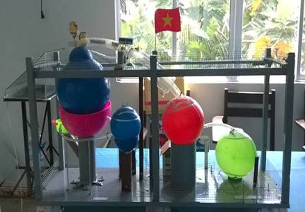Mô hình “Bè tự động cho cá ăn trong ao” của học sinh Nguyễn Thị Ánh Ngọc - Trường TH Hậu Mỹ Phú, huyện Cái Bè;