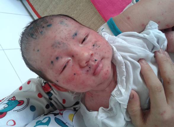 Bé mới sinh đã bị thủy đậu
