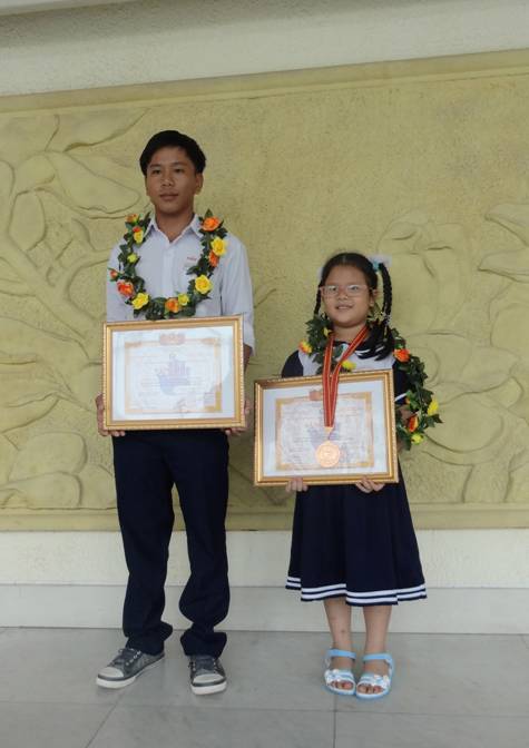 | Em Nguyễn Văn Nhiều và Em Huỳnh Ngọc Mỹ Linh tác giả đạt giải CTSTTTNNĐ toàn quốc lần thứ 10 năm 2014. |