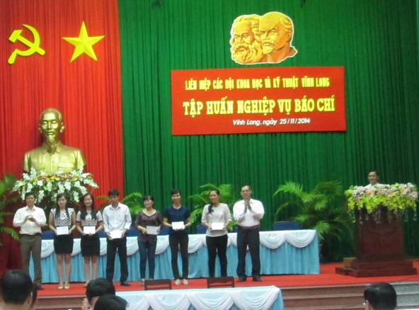 Nhằm nâng cao kiến thức và kỹ năng nghiệp vụ báo chí, nhất là báo chí khoa học cho cán bộ phụ trách bản tin, website tại các các quan thuộc sở, ban, ngành tỉnh; các trường cao đẳng, đại học trên địa bàn tỉnh; các hội thành viên thuộc Liên hiệp các Hội Khoa học và Kỹ thuật (Liên hiệp Hội) tỉnh và các Liên hiệp Hội tỉnh bạn, Liên hiệp Hội tỉnh Vĩnh Long đã tổ chức lớp Tập huấn nghiệp vụ báo chí trong thời gian một ngày 25-11-2014 tại Hội trường Tỉnh ủy Vĩnh Long. |