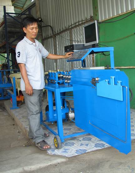 | Anh Tùng bên cạnh “Máy bẻ tay dê” vừa được cải tiến |