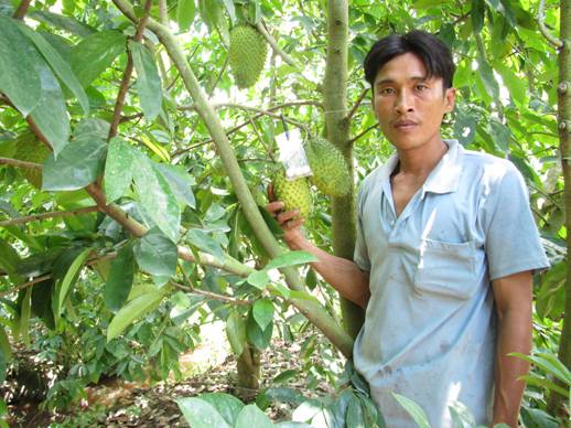 Anh Nguyễn Văn Sáu bên cạnh vườn mãng cầu xiêm Thái đang cho trái