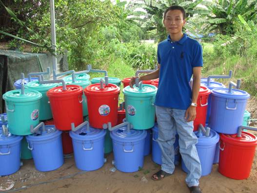 Anh Trần Hồng Tuyên đang thao tác xô giặt