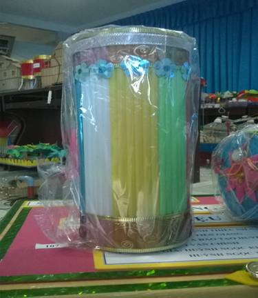 Với đề tài “Bộ sưu tập cuộc sống mới dành cho vật liệu phế thải”, hai em Kiều Trang cùng Thiên Hương đã khéo léo làm ra những vật dụng xinh xắn, mới lạ gồm 18 sản phẩm được đánh số thứ tự. Điển hình như Bát đựng có nắp đậy, có mã số 1 được làm từ giấy báo cũ, có tác dụng đựng những vật dụng. Bộ dựng có dây kéo, mã số 2, có được làm từ chai nhựa, dùng để dựng dụng cụ cho bé đi nhà trẻ. Hộp đựng giấy, có mã số 9 được làm từ các đĩa CD. Lọ cắm hoa các dạng hay hộp đựng viết, có mã số 14, 15 được làm từ chai nhựa cũ, nút áo, ống hút…và nhiều dạng khác có hình dáng khác nhau như ví xách tay, hộp đựng phụ kiện trang điểm được làm bằng vỏ lon đồ hộp…