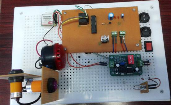 Hệ thống hoạt động theo nguyên lý sử dụng phích cắm biến thế để chuyển từ hiệu điện thế dân dụng 220V sang 5V. Khi bật hệ thống, nó sẽ gửi một tin nhắn đến số thuê bao đã lập trình với nội dung “Hệ thống sẵn sàng” để chủ sở hữu xem hệ thống có hoạt động bình thường hay không. Hệ thống sử dụng cảm biến vật cản hồng ngoại bao gồm 1 led thu và 1 led phát tích hợp trên cùng một thiết bị. Chân của led phát được nối với nguồn, chân của led thu nối với vi điều khiển. Khi không có vật cản, led thu nhận được tín hiệu hồng ngoại, lúc này điện trở led thu (phụ thuộc vào cường độ hồng ngoại của led phát) sẽ rất nhỏ. Khi có vật cản, led thu không nhận được tín hiệu hồng ngoại, điện trở led thu rất lớn, điện áp tăng lên xấp xỉ 5V. Vì led thu nối với vi điều khiển, nên vi điều khiển sẽ nhận được tín hiệu 5V từ ngõ vào, sau khi xử lý theo lập trình, ngõ ra vi điều khiển xuất tín hiệu 5V kích cho relay hoạt động, qua đó làm chuông báo động reo lên; đồng thời vi điều khiển sẽ kích cho module GSM sim 900A+ PCB Antenna thực hiện gửi tin nhắn và cuộc gọi đến chủ sở hữu. Nội dung tin nhắn gửi đi và số thuê bao nhận được tin nhắn, cuộc gọi báo là do người lập trình quyết định; riêng với sản phẩm của tác giả, hệ thống sẽ gửi vào sim lập trình với nội dung “Co dot nhap tu cua 1” khi có vật cản giữa hai LED ở cửa 1 và với nội dung “Co dot nhap tu cua 2” khi có vật cản giữa hai LED ở cửa 2.(cửa 1 và cửa 2 chính là đại diện cho các vị trí tùy ý khi lắp đặt).