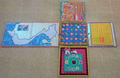 Hoặc trò chơi “Việt Nam mến yêu”. Có một mặt dài hình chữ nhật trên là một bản đồ hình Việt Nam rỗng bên cạnh là một bản đồ hoàn chỉnh nhưng nhỏ làm mẫu quan sát để chơi cho đúng. Có hình bản đồ màu sắc đẹp được cắt ra thành từng mãng nhỏ, yêu cầu khi chơi ghép các mãng trên hình rỗng để tạo thành Bản đồ Việt Nam. Trò chơi phát triển tư duy, kỷ năng khéo léo của đôi bàn tay, chơi được nhiều bạn cùng lúc.