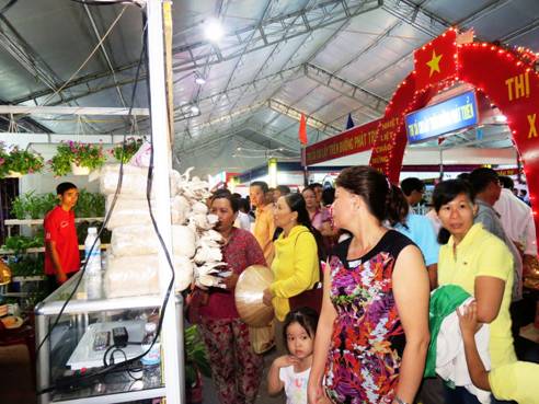Ngoài khu triển lãm thành tựu kinh tế, văn hóa, xã hội, quốc phòng, an ninh thì Triển lãm còn dành riêng một khu với hơn 50 gian hàng bán các mặt hàng Việt Nam chất lượng cao. Nơi đây thu hút người dân tập trung đông nhất, vì nơi đây người dân vừa được tham quan vừa có thể mua sắm các mặt hàng Việt Nam chất lượng cao. Theo ghi nhận, những lúc cao điểm khoảng 18 đến 19 giờ tối thì người dân đến khu này tăng khoảng gấp 10 lần so với ban ngày. Đây là hoạt động có ý nghĩa chính trị, kinh tế, văn hóa, xã hội sâu sắc, nhằm thực hiện chủ trương cuộc vận động "Người Việt Nam ưu tiên dùng hàng Việt Nam" do Bộ chính trị phát động. Và đến nay cuộc vận động này đã được người dân Việt Nam từ nông thôn đến thành thị, từ miền núi đến vùng đồng bằng đã cùng nhau hưởng ứng. Chị Lê Thị Thúy An, phường 6, TP. Mỹ Tho cho biết: "Ngoài triển lãm thành tựu của tỉnh nhà, chúng tôi thấy phấn khởi khi đến đây được mua hàng Việt Nam với giá không cao nhưng chất lượng, mẫu mã không thua kém hàng ngoại. Không riêng gì tôi mà hầu như ai đến đây đều cũng ưu tiên chọn hàng Việt Nam. Từ nay gia đình tôi sẽ chọn 100% hàng Việt để sử dụng thay thế dần các loại hàng ngoại trước đây".