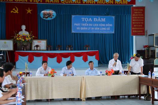 Ngày 7/11/2015, tại Làng cổ Đông Hòa Hiệp, Cái Bè, tỉnh Tiền Giang đã tổ chức tọa đàm chuyên đề “Phát triển du lịch cộng đồng và quản lý di sản làng cổ”. Mục tiêu nhằm đánh giá thực trạng và định hướng phát triển du lịch cộng đồng thông qua bảo tồn và phát huy các giá trị di sản tại Làng cổ Đông Hòa Hiệp, giới thiệu tiềm năng phát triển du lịch sinh thái, chia sẻ kinh nghiệm trong hoạt động khai thác du lịch cộng đồng đặc biệt là du lịch Làng cổ cùng những vấn đề liên quan. |