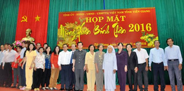 Tỉnh ủy - Hội đồng nhân dân - Ủy ban nhân dân - Ủy ban Mặt trận Tổ quốc tỉnh tổ chức Họp mặt trí thức, các chức sắc tôn giáo, giới công thương người Hoa, việt kiều, văn nghệ sĩ, vận động viên, phóng viên mừng Xuân Bính Thân 2016. Đến dự có ông Lê Hồng Quang, Ủy viên Trung ương Đảng, Phó Bí thư Thường trực Tỉnh ủy; ông Võ Văn Bình, Phó Bí thư Tỉnh ủy; các Phó Chủ tịch UBND tỉnh: Lê Văn Nghĩa, Trần Thanh Đức; cùng lãnh đạo các sở, ban, ngành tỉnh.