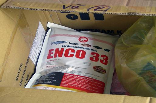 Hiện nay, người nuôi thủy sản sử dụng các loại hóa chất, kháng sinh cấm và hạn chế sử dụng như: Enrofloxacin, Malachite Green, Ciprofloxacin, Oxytetracylin, Sulfonamide, Florfenicol, Difloxacin, Amoxicillin..., trong đó Enrofloxacin loại kháng sinh cấm được sử dụng phổ biến nhất do có phổ kháng khuẩn rộng. Các loại hóa chất, kháng sinh này được người nuôi trồng thủy sản sử dụng dưới dạng nguyên liệu là chính nhưng cũng có trường hợp sử dụng là sản phẩm được bao gói.