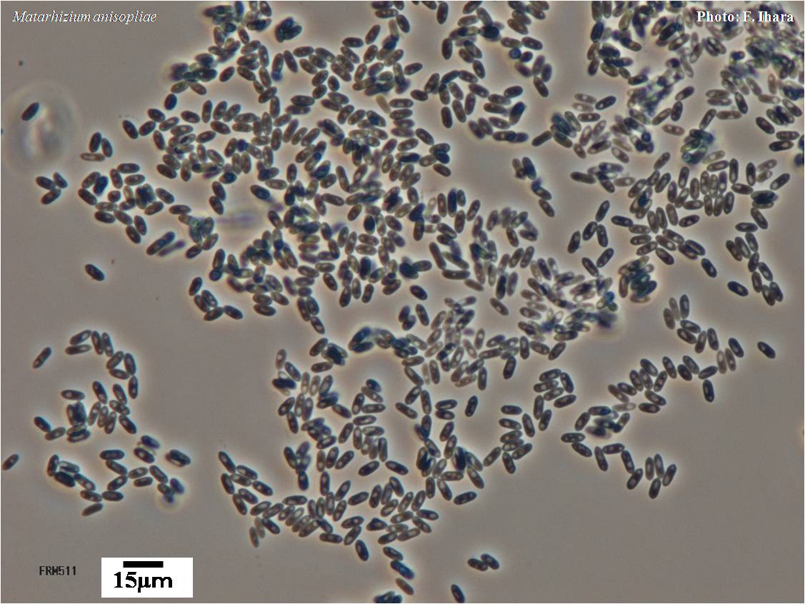 Bào tử nấm xanh (Metarhizium anisopliae) dưới kính hiển vi. Ảnh: sưu tầm.