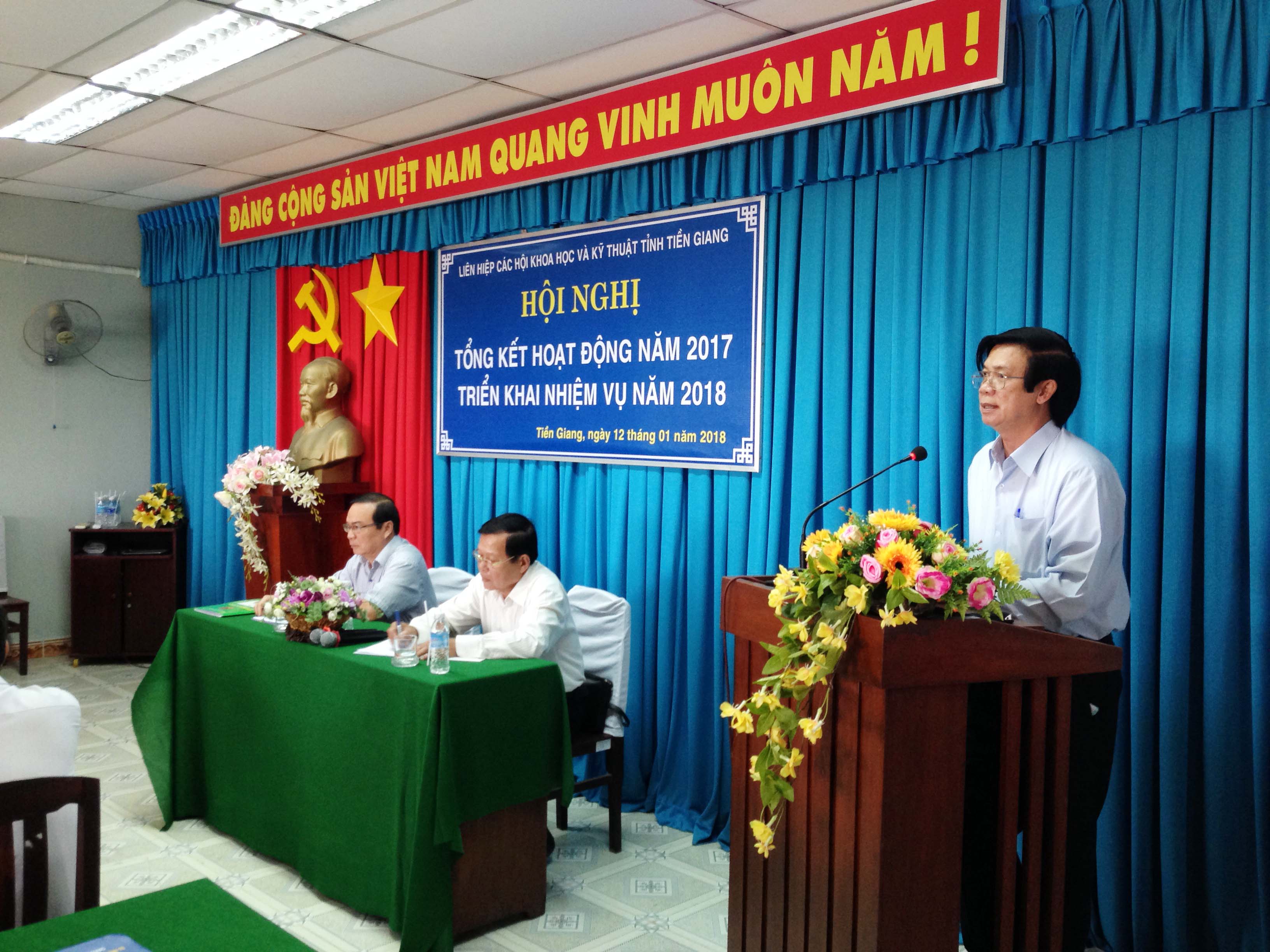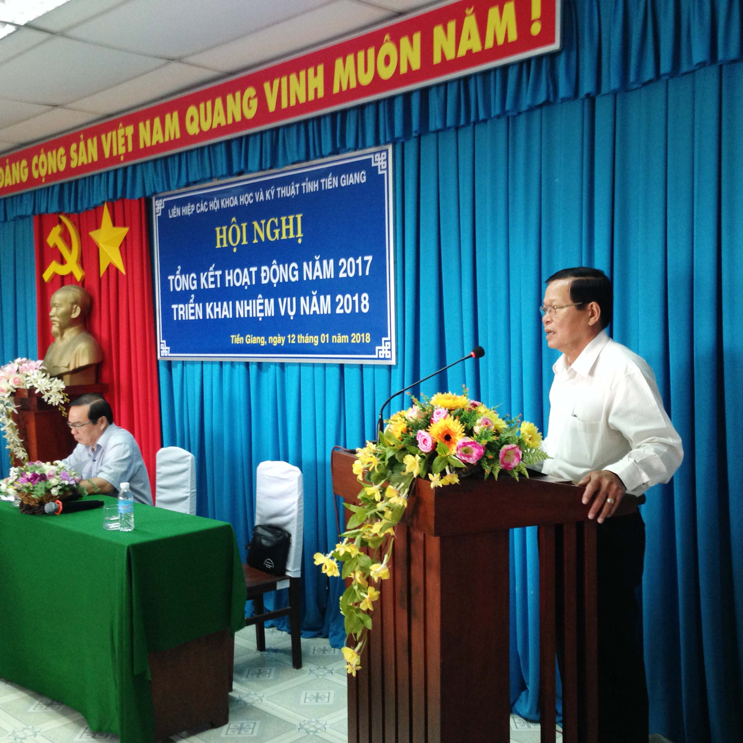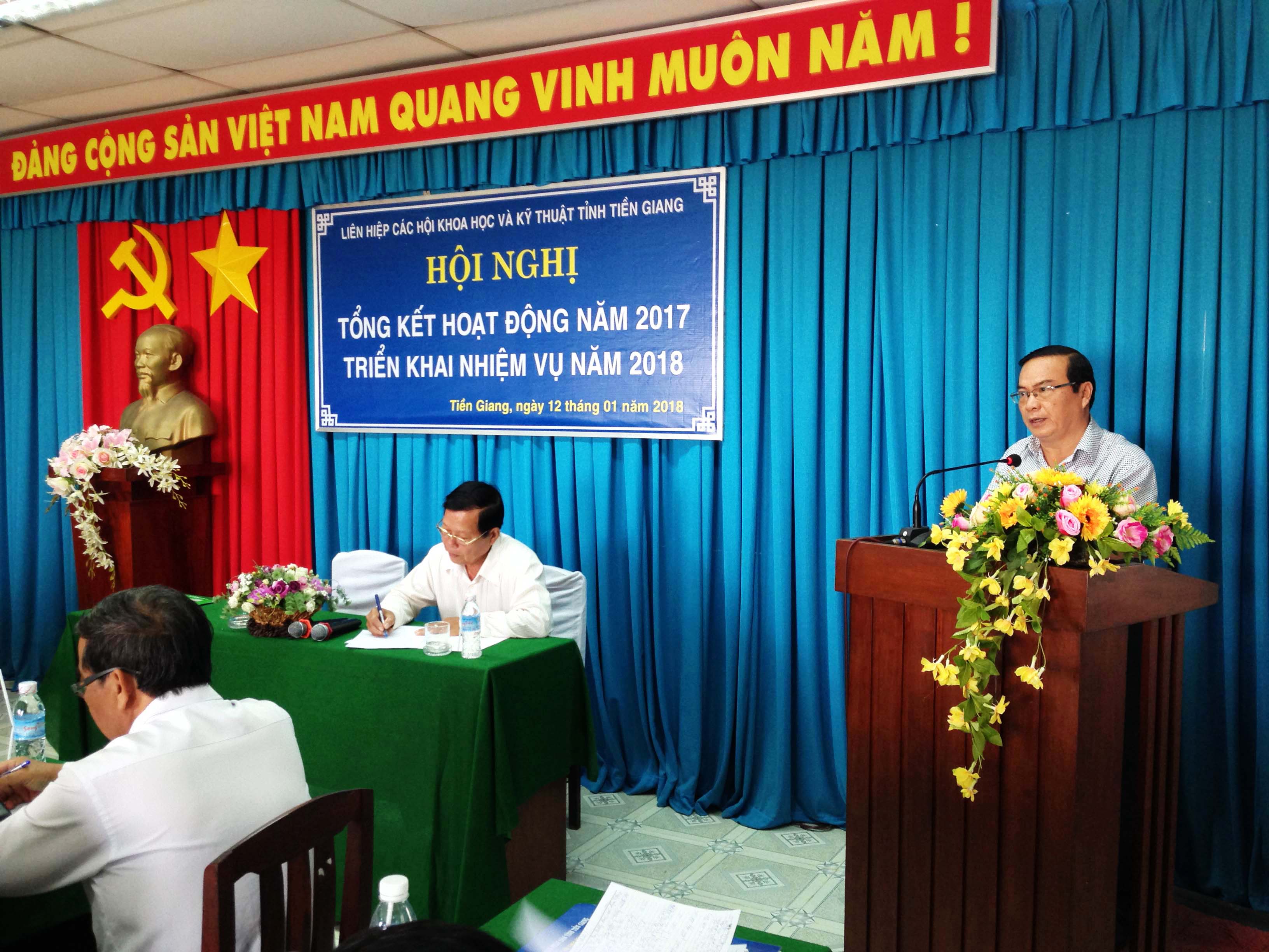 Sáng ngày 12/01/2018, Liên hiệp các Hội Khoa học và Kỹ thuật tỉnh Tiền Giang (Liên hiệp Hội) tổ chức Hội nghị tổng kết hoạt động năm 2017; triển khai nhiệm vụ năm 2018. Đến dự, có đồng chí Nguyễn Văn Danh - Ủy viên BCHTW Đảng, Bí thư Tỉnh ủy, Chủ tịch HĐND tỉnh; đồng chí Phạm Anh Tuấn – Tỉnh ủy viên, Phó Chủ tịch UBND tỉnh; cùng lãnh đạo các sở, ban ngành, đoàn thể tỉnh, các ủy viên BCH Liên hiệp Hội và đại diện lãnh đạo của 37 Hội thành viên và đơn vị thành viên liên kết tham dự. |