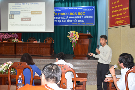Tại hội thảo, các lãnh đạo, chuyên gia, nhà khoa học đến từ Liên minh Hợp tác xã Việt Nam, Trường Đại học Cần Thơ, Trường Cán bộ Quản lý Nông nghiệp – Phát triển nông thôn 2 (Bộ NN-PTNT), lãnh đạo các Hợp tác xã (HTX) trên địa bàn tỉnh trình bày tham luận và phát biểu ý kiến chia sẻ những kinh nghiệm về phát triển HTX nông nghiệp kiểu mới theo kinh nghiệm của Thái Lan và Nhật Bản; những định hướng chính của ngành Nông nghiệp và PTNT về hỗ trợ xây dựng và duy trì hoạt động của các loại hình HTX nông nghiệp theo mô hình mới; giải pháp hỗ trợ HTX xây dựng chuỗi liên kết sản xuất gắn với tiêu thụ nông sản từ thực tiễn Tiền Giang... Đặc biệt, chuyên gia đến từ tổ chức JICA (Cơ quan Hợp tác Quốc tế Nhật Bản) về hợp tác trên lĩnh vực nông nghiệp – Tiến sĩ Sato Chikara còn giới thiệu về dự án “Tăng cường chức năng HTX nông nghiệp ở Việt Nam” do Chính phủ Nhật Bản tài trợ bao gồm các nội dung: Xây dựng kế hoạch trung hạn; phát triển dịch vụ tiêu thụ tập trung, dịch vụ cung ứng tập trung và dịch vụ tín dụng nội bộ...