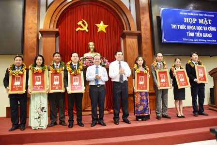 Chào mừng ngày Khoa học và Công nghệ Việt Nam, ngày 18-5-2018, UBND tỉnh Tiền Giang tổ chức họp mặt trí thức Khoa học và Công nghệ (KH-CN). Có 150 đại biểu trí thức tham dự.