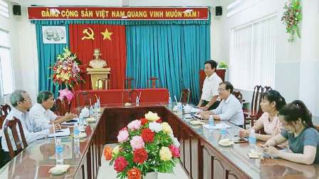 Đại diện Đảng đoàn LHH (bên trái) làm việc với Đảng ủy, Ban giám hiệu