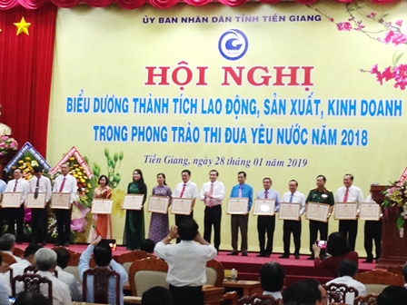 Chiều ngày 28/01/2019, tại Trung tâm Hội nghị tỉnh Tiền Giang, UBND tỉnh Tiền Giang tổ chức Hội nghị biểu dương thành tích lao động, sản xuất kinh doanh trong phong trào thi đua yêu nước năm 2018. TS Lê Văn Hưởng, Phó Bí thư Tỉnh ủy, Chủ tịch UBND tỉnh, Chủ tịch Hội đồng Thi đua – Khen thưởng tỉnh đến dự và chủ trì hội nghị. |