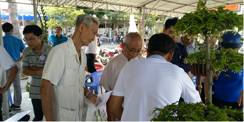 Lãnh đạo Hội Sinh vật cảnh và khách tham quan sản phẩm trưng bài tại điểm sinh hoạt