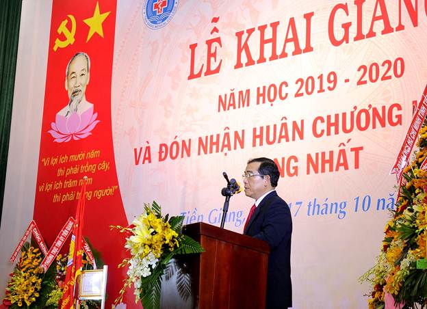 Phát biểu chỉ đạo tại Lễ khai giảng, Phó Chủ tịch UBND tỉnh Trần Văn Dũng đề nghị Ban giám hiệu, giảng viên, cán bộ, viên chức, HSSV nhà trường tập trung thực hiện một số nhiệm vụ như sau: Tiếp tục triển khai thực hiện Nghị quyết số 29-NQ/TW của Ban chấp hành Trung ương, Chương trình hành động của Chính phủ và của Tỉnh ủy về đổi mới căn bản, toàn diện giáo dục và đào tạo; không ngừng nâng cao trình độ chuyên nghiệp vụ và đạo đức nghề nghiệp cho đội ngũ giảng viên, chú ý tạo nguồn cán bộ lãnh đạo kế thừa… nhằm đáp ứng yêu cầu xây dựng và phát triển Trường CĐYT Tiền Giang trong lộ trình trở thành Trường Đại học về Y Dược; mở rộng quy mô, đa dạng hóa ngành nghề, quy mô đào tạo gắn với đảm bảo chất lượng đầu ra và nhu cầu của thị trường lao động; chú ý đào tạo nhân viên y tế theo định hướng y học gia đình phục vụ cho đề án thí điểm mô hình “Bác sĩ gia đình” theo chỉ đạo của Bộ Y tế; quan tâm đến công tác giáo dục đạo đức, lối sống, kỹ năng, giáo dục thể chất cho HSSV, đặc biệt, chú trọng việc rèn luyện “Y đức, Dược đức” cho các em ngay từ trên giảng đường cũng như trong thực hành chăm sóc sức khỏe bệnh nhân…