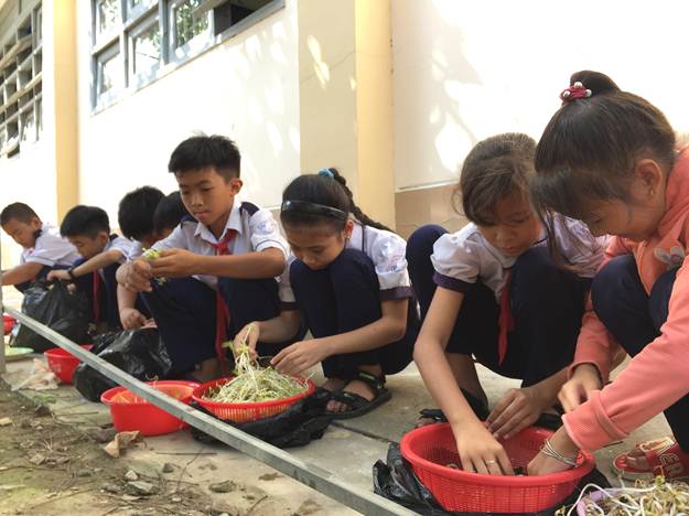 Học sinh thu hoạch giá đỗ
