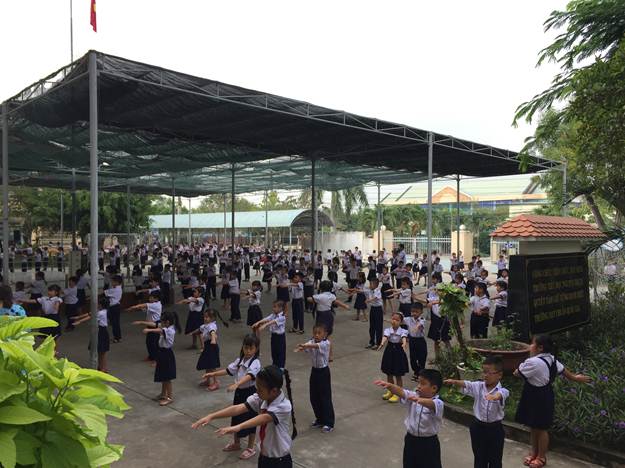 Học sinh tập thể dục giữa giờ.