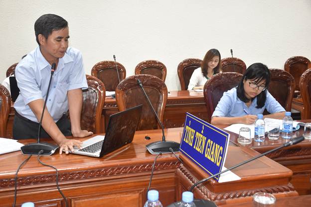 | Đại biểu tham dự hội thảo trực tuyến tại điểm cầu Tiền Giang. |