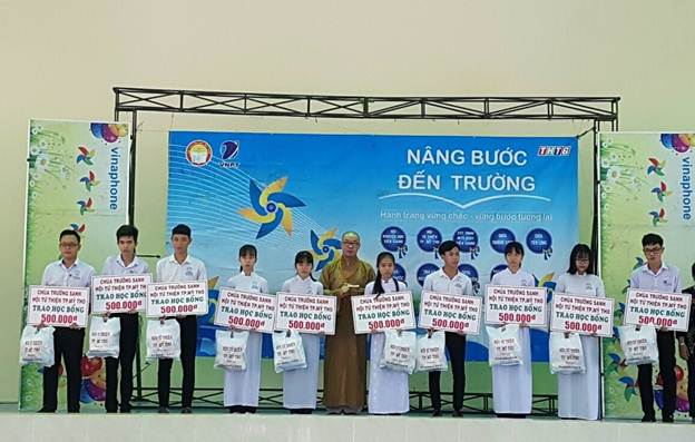 Chương trình “Nâng bước đến trường” do Ban từ thiện giáo hội phật giáo Việt Nam tỉnh Tiền Giang; Chùa Trường Sanh; Viễn Thông Tiền Giang; Công ty TNHH MTV sổ số Kiến thiết tỉnh Tiền Giang; Sở Giáo dục và Đào tạo tỉnh; Hội Khuyến học tỉnh; Đài Phát thanh và truyền hình tỉnh; Hội từ thiện TP. Mỹ Tho thực hiện, cùng với sự đồng hành của các tổ chức, cá nhân trong và ngoài tỉnh đã trải qua 11 năm, tiếp bước cho hàng trăm em học sinh khó khăn, viết tiếp được ước mơ của mình bằng con đường tri thức.