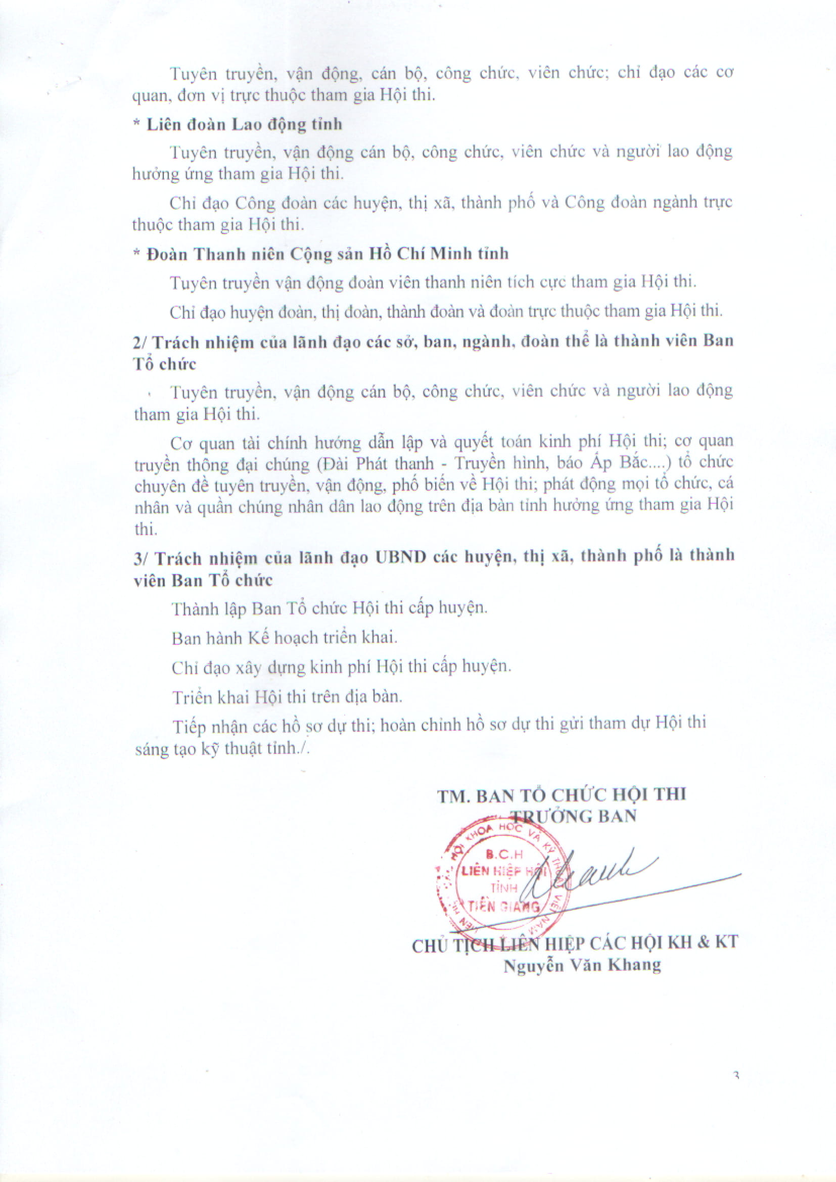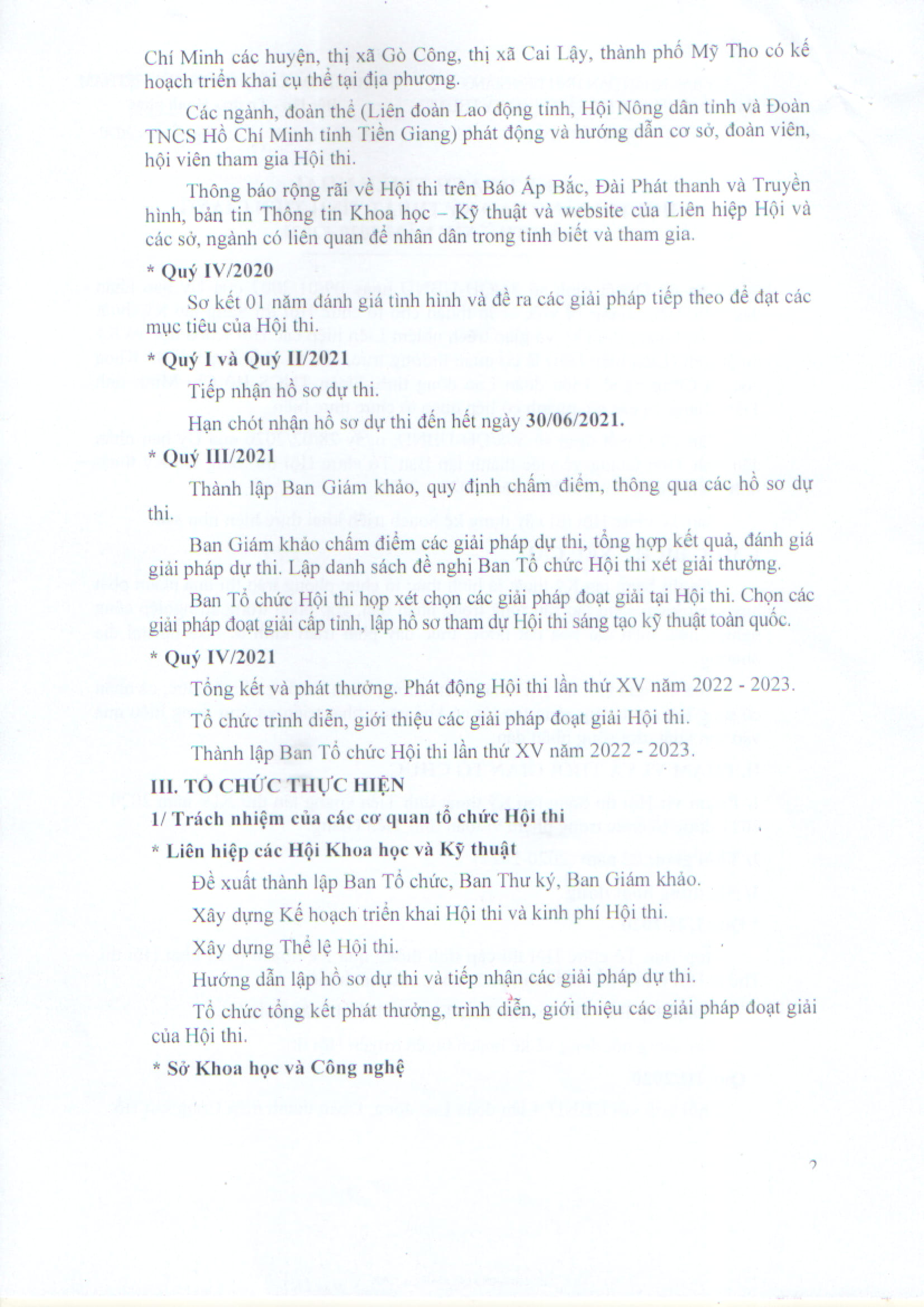Ngày 12/3/2020 Ban tổ chức Hội thi sáng tạo kỹ thuật ban hành Quyết định số 02/KH-HTSTKT, Kế hoạch triển khai Hội thi sáng tạo kỹ thuật tỉnh Tiền Giang lần thứ XIV năm 2020 - 2021.