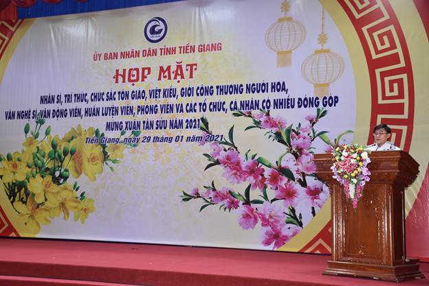 Phát biểu tại buổi họp mặt, ông Nguyễn Văn Mười – Phó chủ tịch UBND tỉnh nhấn mạnh, năm 2020, tuy bị ảnh hưởng của dịch Covid-19 và tình hình hạn mặn, nhưng với quyết tâm cao của cả hệ thống chính trị, cùng với nỗ lực vượt qua khó khăn vươn lên của đông đảo người dân, cộng đồng xã hội và doanh nghiệp, nên tình hình kinh tế - xã hội của tỉnh Tiền Giang tiếp tục phát triển khá toàn diện trên hầu hết các lĩnh vực. Các chỉ tiêu đề ra đều hoàn thành đạt và vượt 14/18 chỉ tiêu, nhóm chỉ tiêu. Thu ngân sách nhà nước (thu nội địa) đạt 10.888 tỷ đồng, đạt 100,7% so dự toán. GRDP bình quân đầu người đạt 56,5 triệu đồng (kế hoạch 55,3 triệu đồng), tăng 1,6 triệu đồng so năm 2019. Tổng vốn đầu tư toàn xã hội ước thực hiện 36.740 tỷ đồng, đạt 98,5% kế hoạch, tăng 11,4% so năm 2019. Phát triển 773 doanh nghiệp, tăng 12% so với năm 2019. Tính đến cuối năm 2020, tổng số doanh nghiệp hoạt động trên địa bàn tỉnh là 6.279 doanh nghiệp, vượt mục tiêu đề ra. Năm 2020, tỉnh thu hút được 37 dự án với tổng vốn đầu tư đăng ký đạt 17.779 tỷ đồng, tăng 33,4% so với năm 2019.