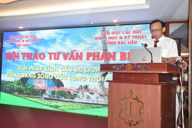 Phát biểu khai mạc hội thảo, thạc sĩ Lâm Thành Đắc, Chủ tịch Liên hiệp Hội Bạc Liêu nhấn mạnh, tiếp theo Chương trình liên kết, hợp tác phát triển du lịch giữa TP. Hồ Chí Minh với 13 tỉnh, thành khu vực ĐBSCL và phát động “Mở cửa lại du lịch trong điều kiện bình thường mới” do UBND tỉnh Bạc Liêu đăng cai tổ chức trong tháng 3/2022, được sự hỗ trợ của Liên hiệp Hội Việt Nam, Liên hiệp Hội Bạc Liêu tổ chức hội thảo nhằm tìm ra giải pháp thiết thực, sát hợp giúp phục hồi và phát triển hoạt động du lịch khu vực ĐBSCL thời kỳ hậu Covid-19.