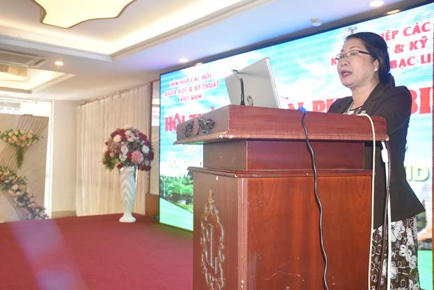 ThS. Lâm Thành Đắc, Chủ tịch Liên hiệp Hội Bạc Liêu phát biểu khai mạc hội thảo