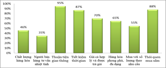Người tiêu dùng hiện nay không chỉ hướng tới giá cả, chất lượng sản phẩm mà còn hướng tới vấn đề kênh phân phối. Qua khảo sát thì có tới 46% tiểu thương ở các chợ truyền thống cho rằng khách hàng đến mua sắm tại chợ là do chất lượng hàng hóa đảm bảo, đáp ứng nhu cầu. Phần lớn khách hàng lựa chọn mua sắm tại chợ vì thuận tiện cho việc đi lại, việc mua bán diễn ra nhanh chóng không mất nhiều thời gian thanh toán, giá cả ở chợ hợp lý hơn so với các điểm mua sắm khác và người mua có quyền trả giá. Ngoài ra, họ lựa chọn chợ còn vì thói quen mua sắm, hàng hóa ở chợ khá phong phú và đa dạng.