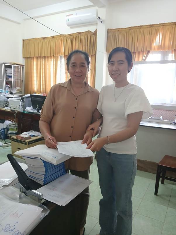 trao tài liệu tuyên truyền Cuộc thi đến Phòng Giáo dục và Đào tạo huyện Gò Công Đông.