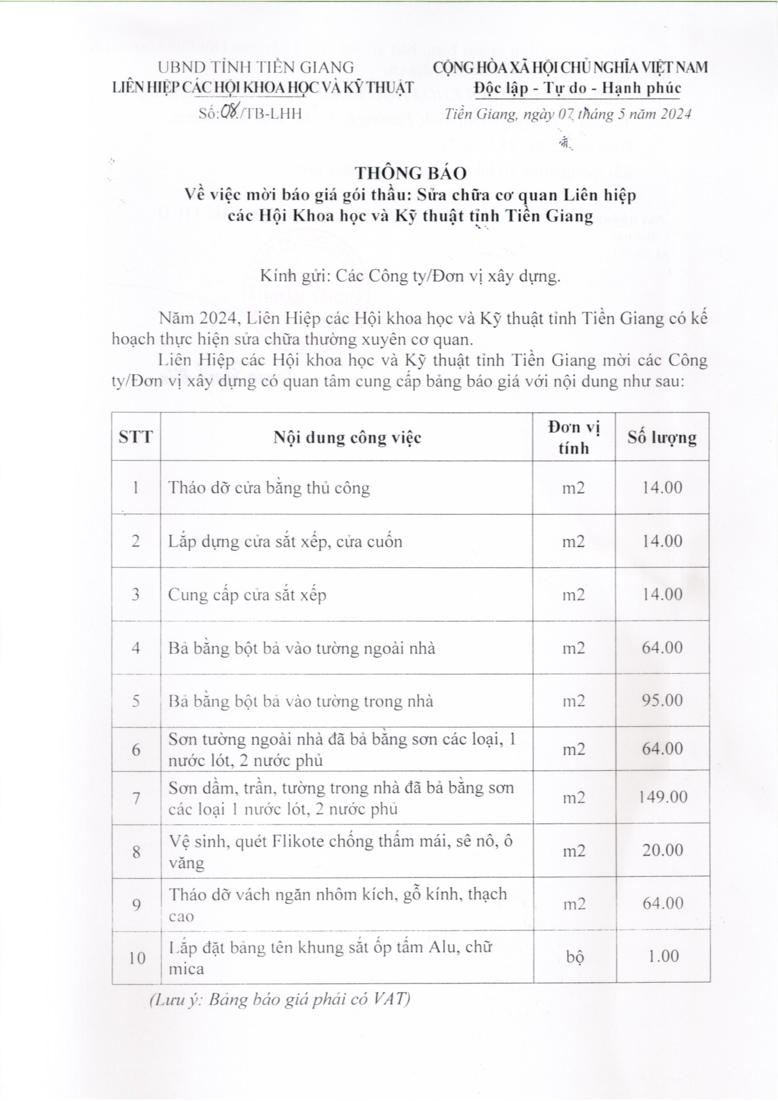 Thư mời tổng kết Hội thi sáng tạo kỹ thuật tỉnh Tiền Giang lần thứ XVI, năm 2024-2025