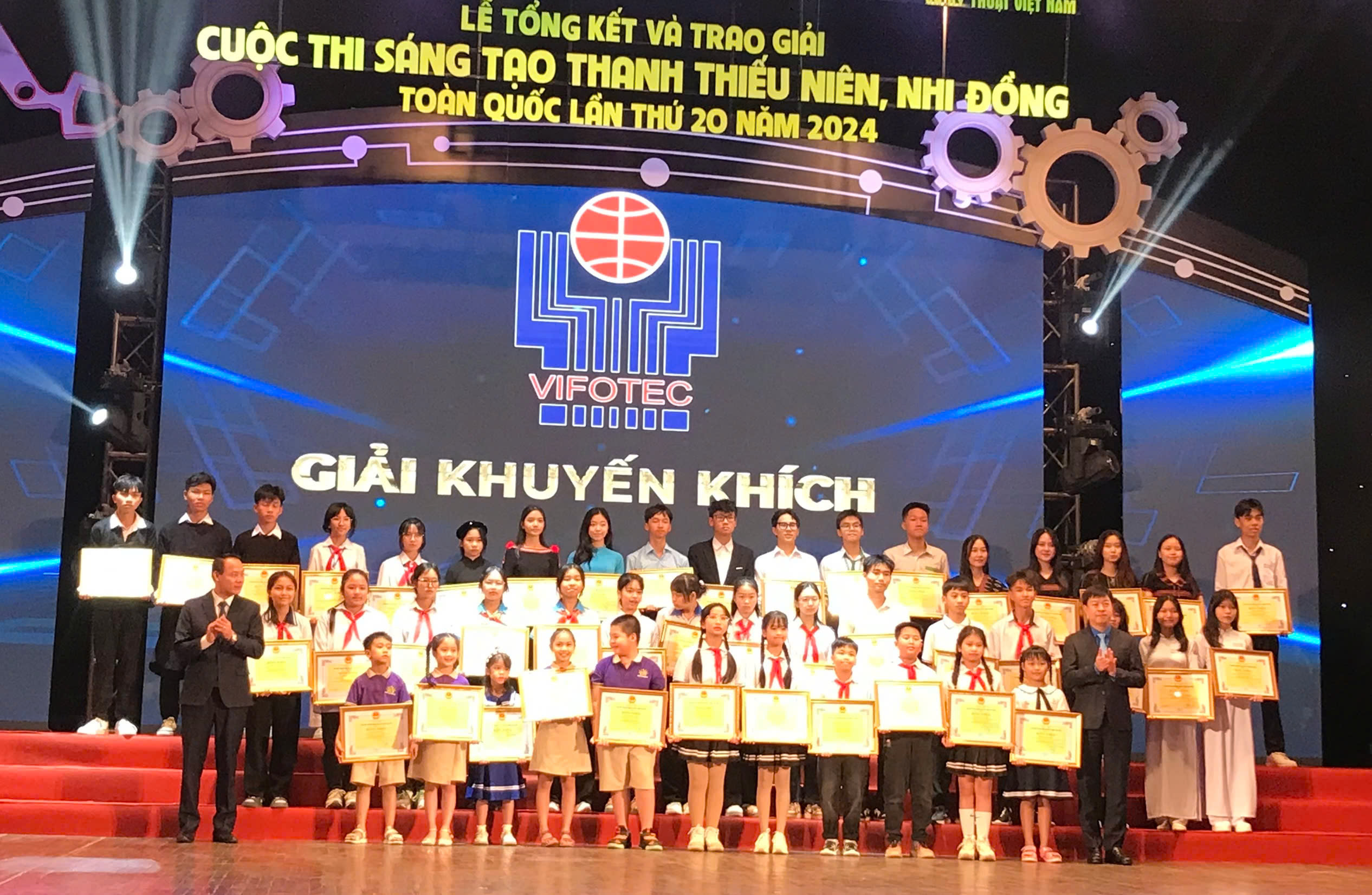 Sáng ngày 2/11/2024, tại Trung tâm Nghệ thuật Âu Cơ (TP. Hà Nội), Liên hiệp các Hội Khoa học và Kỹ thuật Việt Nam, Quỹ Hỗ trợ sáng tạo Kỹ thuật Việt Nam (VIFOTEC) phối hợp Trung ương Đoàn TNCS Hồ Chí Minh, Bộ Giáo dục và Đào tạo, Bộ Khoa học và Công nghệ, Tổng Liên đoàn Lao động Việt Nam tổ chức tổng kết 20 năm và trao giải Cuộc thi sáng tạo dành cho thanh niên, thiếu niên và nhi đồng toàn quốc lần thứ 20 (gọi tắt là Cuộc thi toàn quốc), năm 2024. |
