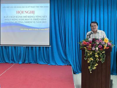 Sáng ngày 31/12/2024, Liên hiệp các Hội khoa học và Kỹ thuật tỉnh Tiền Giang (Liên hiệp Hội) tổ chức tổng kết năm 2024, triển khai phương hướng nhiệm vụ năm 2025. Đến dự hội nghị có ông Phạm Văn Trọng – Tỉnh ủy viên, Phó Chủ tịch Ủy ban nhân dân (UBND) tỉnh; TS. Nguyễn Văn Khang – Bí thư Đảng Đoàn, Chủ tịch Liên hiệp Hội; quý đại biểu là Ủy viên Ban Thường vụ, Ủy viên Ban Chấp hành Liên hiệp Hội; tham dự hội nghị còn có quý đại biểu là đại diện lãnh đạo các sở, ngành tỉnh, đại diện lãnh đạo Hội thành viên và thành viên liên kết (ngoài Ban Chấp hành). Chi tiết »