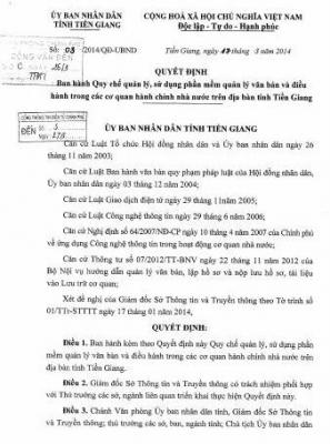 Quyết định ban hành Quy chế quản lý, sử dụng phần mềm quản lý văn bản và điều hành trong các cơ quan hành chính nhà nước trên địa bàn tỉnh Tiền Giang.  Chi tiết »
