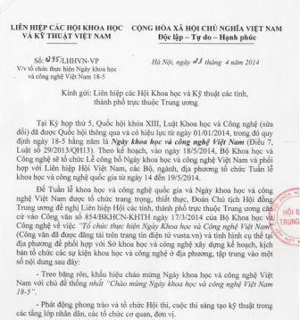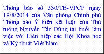 Thông báo Ý kiến kết luận của Thủ tướng Nguyễn Tấn Dũng tại buổi làm việc với Liên hiệp các Hội Khoa học và Kỹ thuật Việt Nam  Chi tiết »