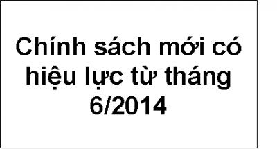Cho vay ưu đãi đối với các dự án ứng dụng kết quả nghiên cứu khoa học- công nghệ; hệ số tối đa nhuận bút tác phẩm báo in, báo điện tử từ 10 - 50; Quy định về hóa đơn áp dụng từ ngày 1-6; Người nhiễm HIV, người sau cai nghiện ma túy được vay vốn ưu đãi; 10 cơ quan chuyên môn được tổ chức thống nhất ở tát cả các quận, huyện, thị xã, thành phố; điều kiện đăng ký thường trú tại thành phố trực thuộc trung ương... là những chính sách mới có hiệu lực từ tháng 6/2014.  Chi tiết »