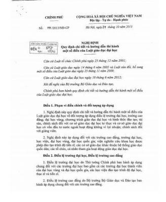 Nghị định Quy định chi tiết và hướng dẫn thi hành một số điều của Luật giáo dục đại học. Chi tiết »