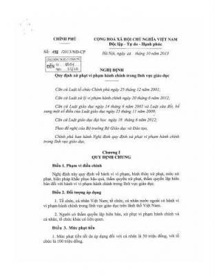 NGHỊ ĐỊNH Quy định xử phạt vi phạm hành chính trong lĩnh vực giáo dục Chi tiết »