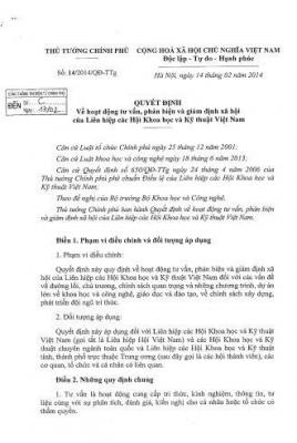 Quyết định về hoạt động tư vấn, phản biện và giám định xã hội của Liên hiệp các Hội Khoa học và Kỹ thuật Việt Nam Chi tiết »
