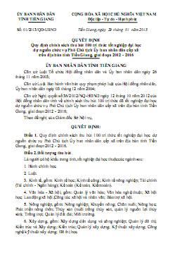 Quy định chính sách thu hút 100 trí thức tốt nghiệp đại học dự nguồn chức vụ Phó Chủ tịch Ủy ban nhân dân cấp xã trên địa bàn tỉnh Tiền Giang, giai đoạn 2012 – 2016  Chi tiết »