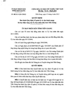 Ban hành Quy định về quản lý và vận hành mạng tin học diện rộng của Ủy ban nhân dân tỉnh Tiền Giang  Chi tiết »