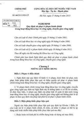Nghị định Quy định xử phạt vi phạm hành chính trong hoạt động khoa học và công nghệ, chuyển giao công nghệ  Chi tiết »